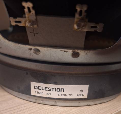 8 ohm Celestion G12K-100 speaker. It was pulled from an old Crate GT112SL cabinet. See serial and codes in pics. I believe the date code 20EQ denotes the 20th day of May, 2005....