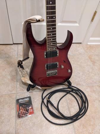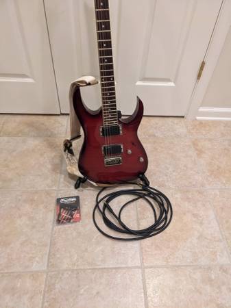 Ibanez RG Electric Guitar with accessories. Works well in overall good condition. See photos. Just don’t play anymore. Model: RGR421EXFM, red color.