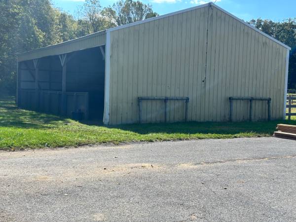 Three sided 30x60 barn for rent. Has plenty of lighting. Has water close but not directly to it. No horses, please, there are no stalls. Floor is stone dust. Rent would depend on your usage idea.