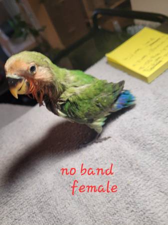 2 dnaed female peachface lovebirds. Hand fed , and hand tame, sweet birds, I can be reached at .