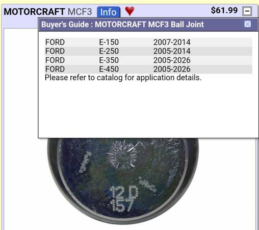 Hello, I have a pair of New Old stock Motorcraft MCF-3 ball joints for the lower position. The Ford part number is 8c2z-3050-a.