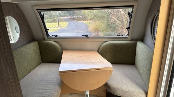 For sale (we are second owners) of a well-maintained 2019 T@B 400 in excellent condition. This is a pre-Covid build (December 2019) and we have had no issues with any of the systems or structure. Comes with the reliable and super-quiet Cool Cat air conditioner, 900w microwave, 3.7 cu ft. 3-way fridge, backup camera hook up, TV, stereo and more. The electrical system has been upgraded for extended off-grid use with 400ah of battery, a 410-watt solar panel, a 3000w inverter and all needed switches, fusing and controllers. It has a soothing green, tan and gray interior with infinity flooring and birch wood cabinets. It’s very cute and easily drivable rig that has been carefully maintained. It has new Goodyear Endurance tires with less than 1000 miles on them and bearings were packed spring 2025. We have all manuals.