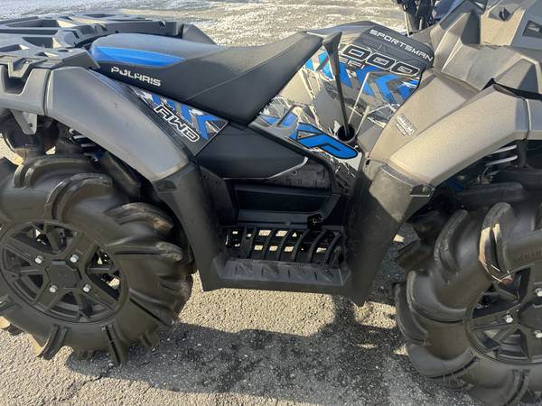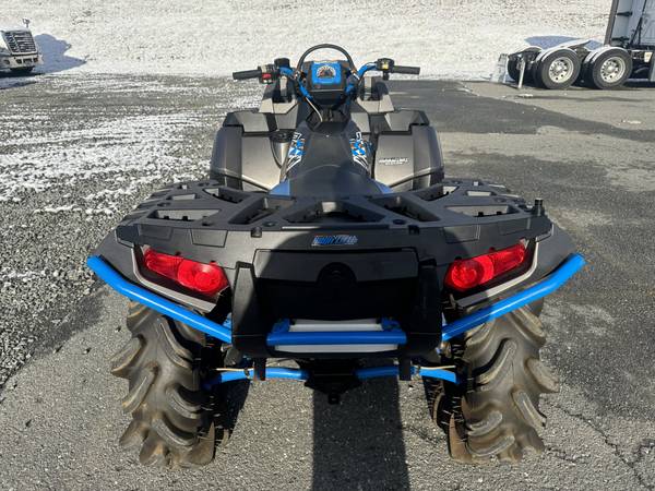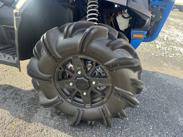 IT COMES FACTORY WITH POLARIS ALUMINUM WHEELS WITH 29.5" HIGHLIFTER OUTLAW TIRES, EPS (POWER STEERING) FRONT BUMPER AND WINCH, THE RADIATOR IS RELOCATED AND IT HAS SNORKELS