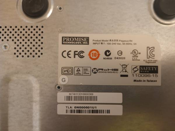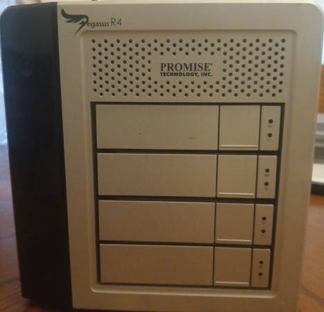 I bought this last year and it didn't come with the Thunderbolt cord and I never got around to buying one but I do have the power cord. It includes the caddies but there are no hard drives included. This model Promise Technology Pegasus R4 RAID Thunderbolt Storage Solution officially supports 8TB of raw capacity using four 2TB drives. The person I bought it from used 4TB drives in each slot for 16TB of total storage.